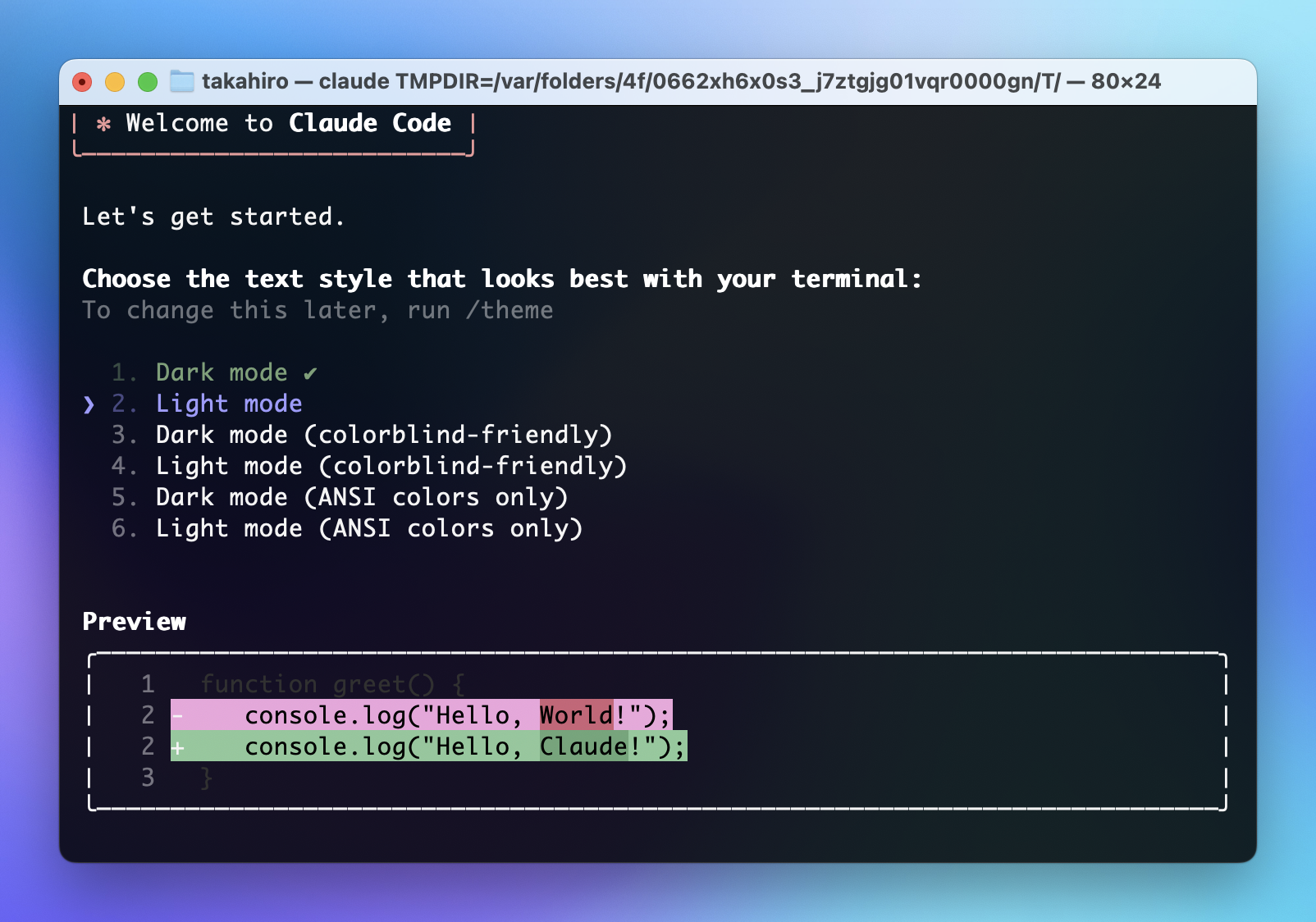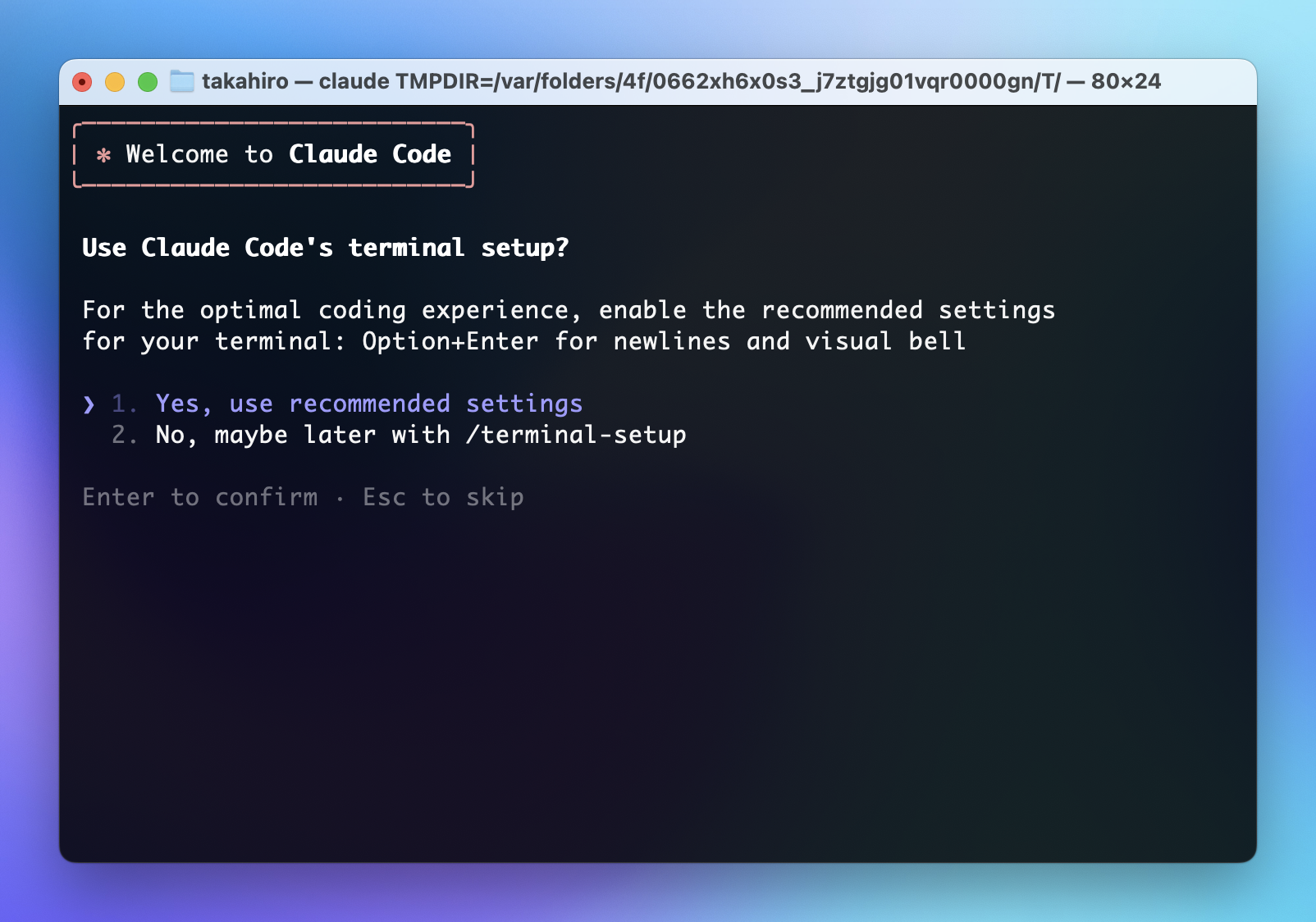 2. claude を実行する
