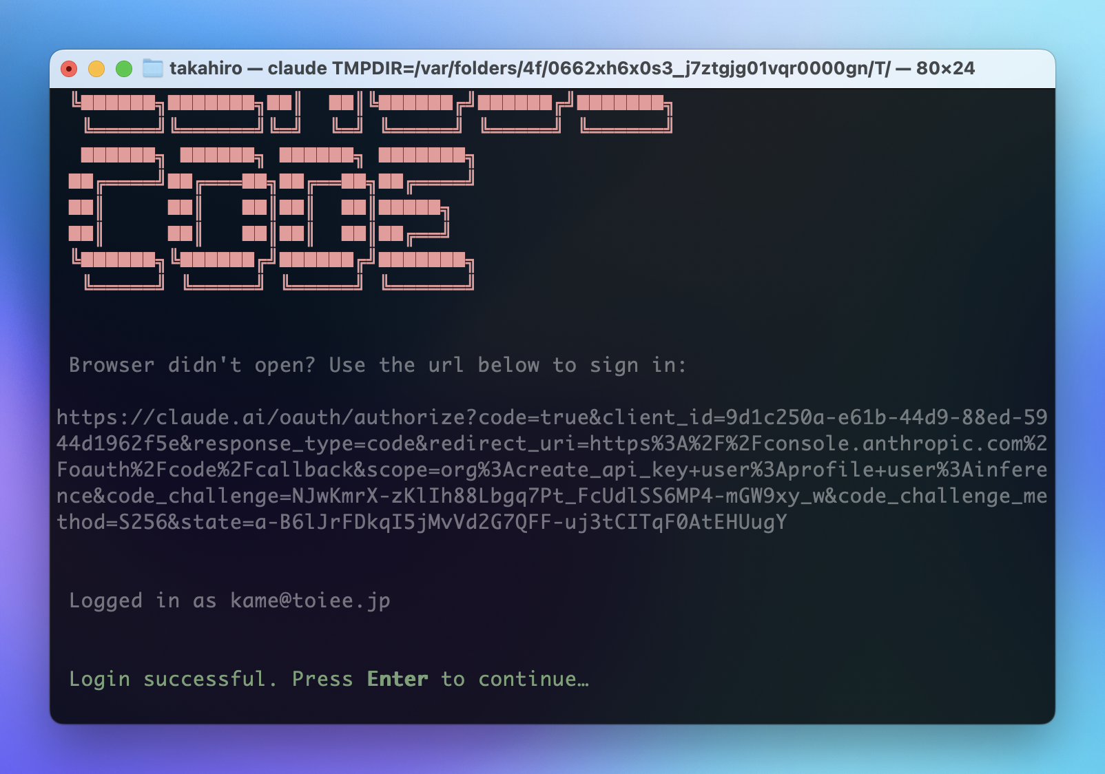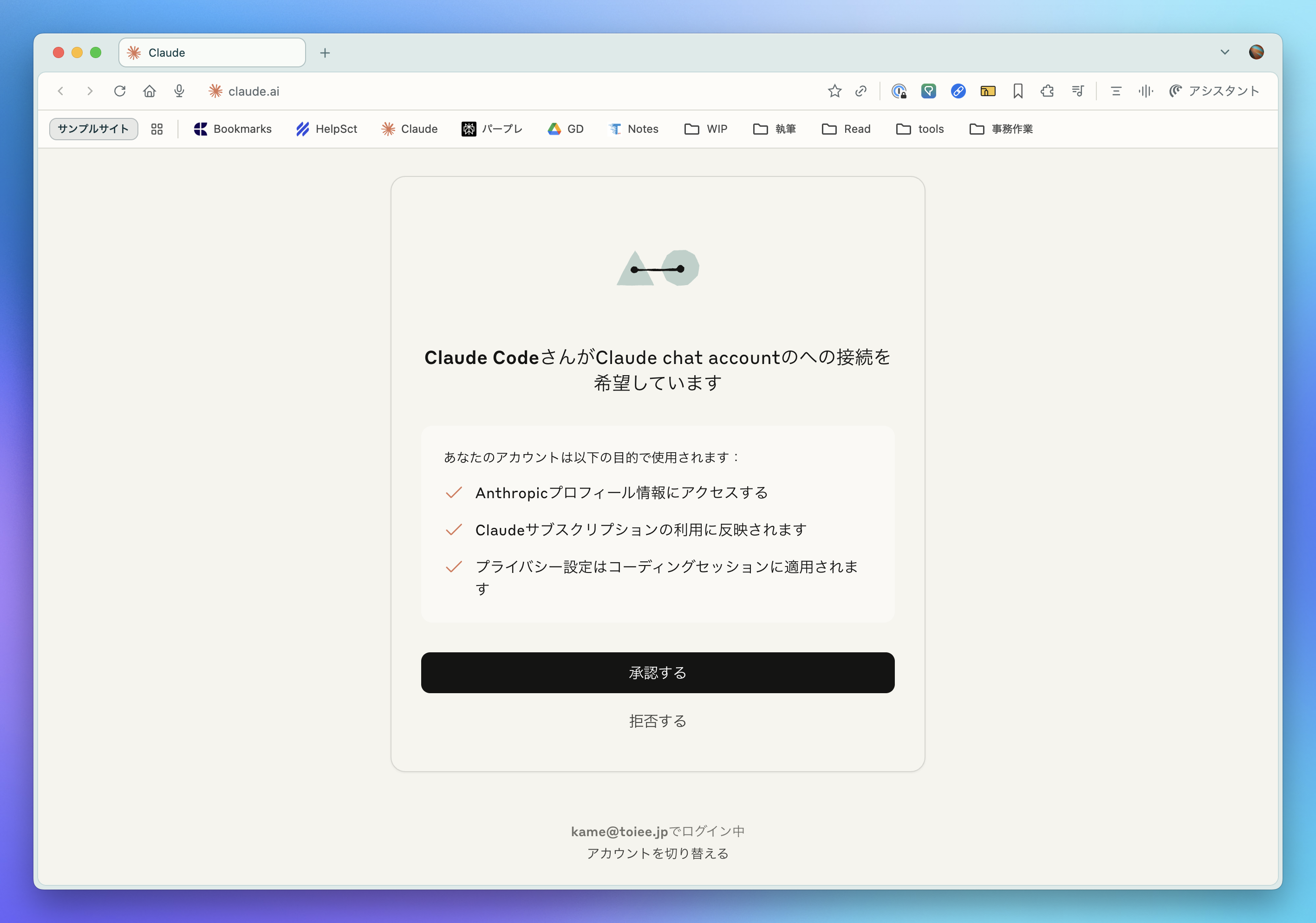 5. ブラウザが開くので、Claude.ai の契約でログイン
