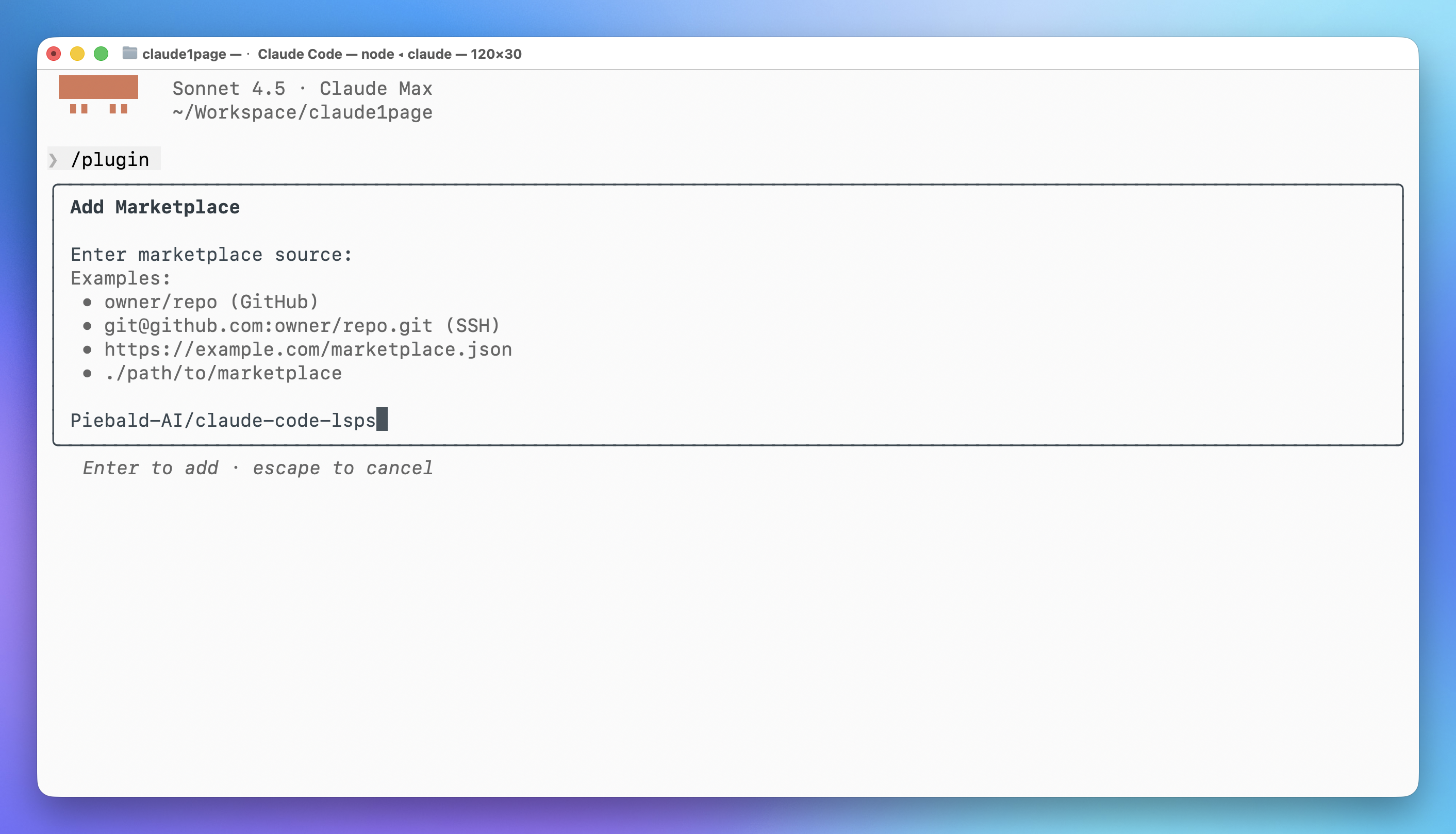 入力後、Enterキーを押してマーケットプレイスを追加します。claude-code-lsps が一覧に表示されれば成功です。