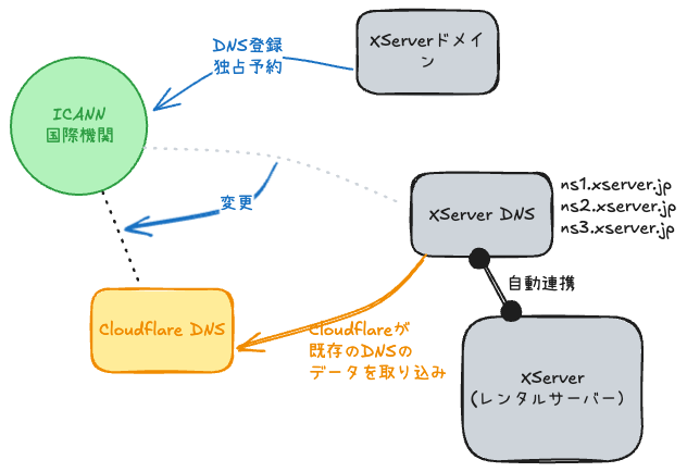 ドメインそのものを移管する必要はありません。ネームサーバーの設定を変更するだけで、現在のドメイン管理会社(XServerドメインなど)はそのまま利用できます。
