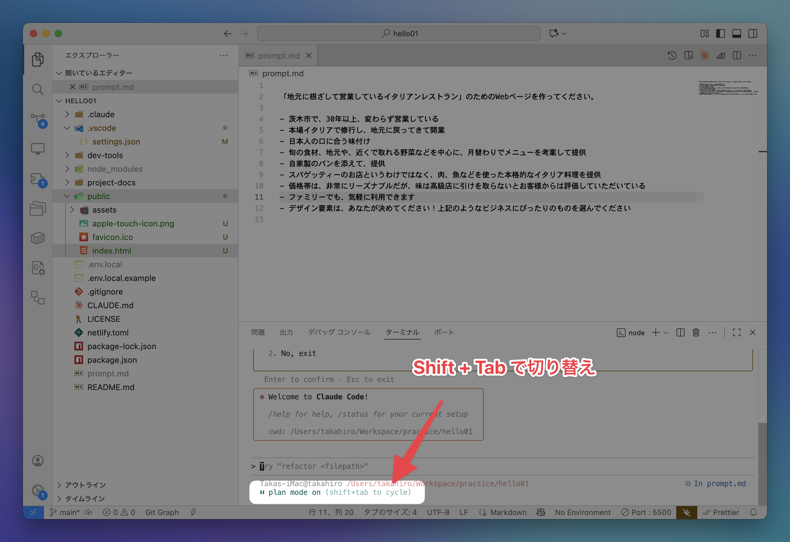 プロジェクトのルートディレクトリにprompt.mdファイルを作成します。